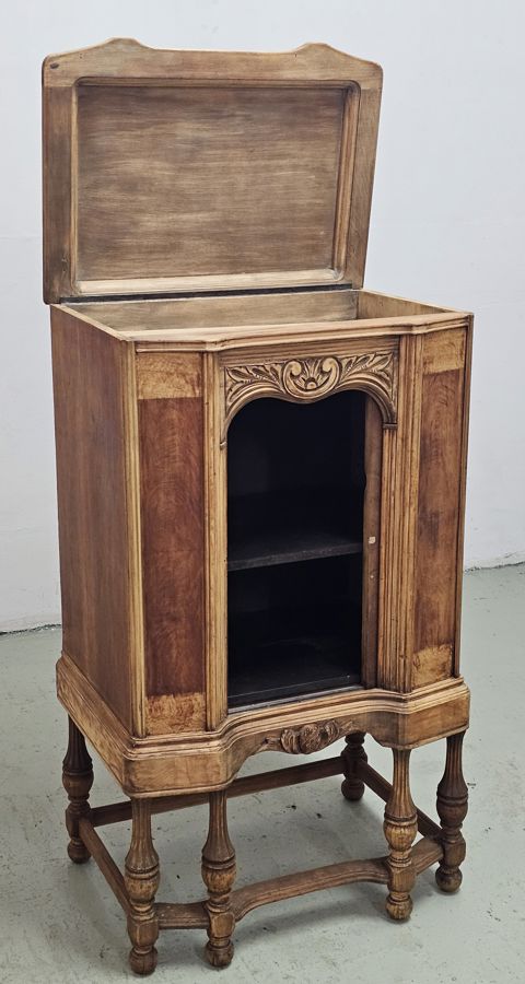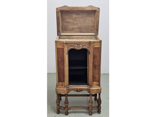Charming Upcycled*His Masters Voice Wood storage Cabinet with Carved Details