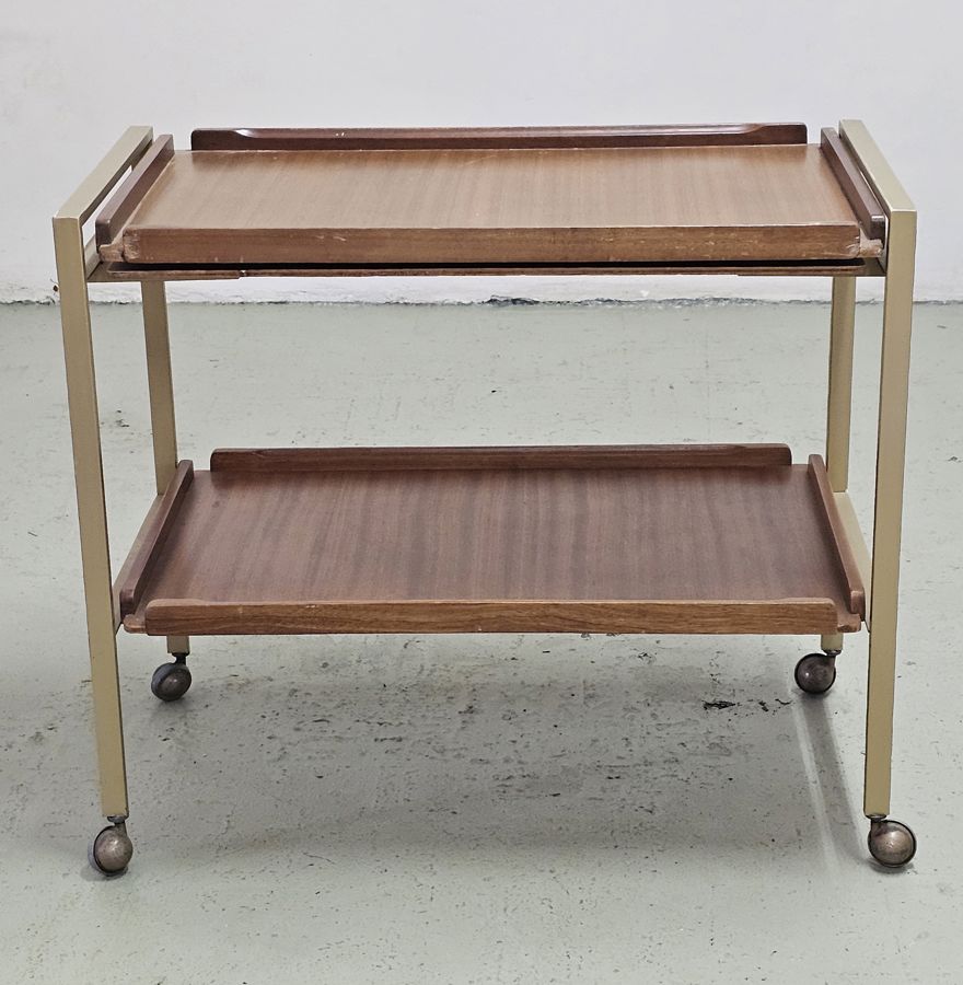 (C-1960's) Vintage Drinks Trolley with removable Teak trays
