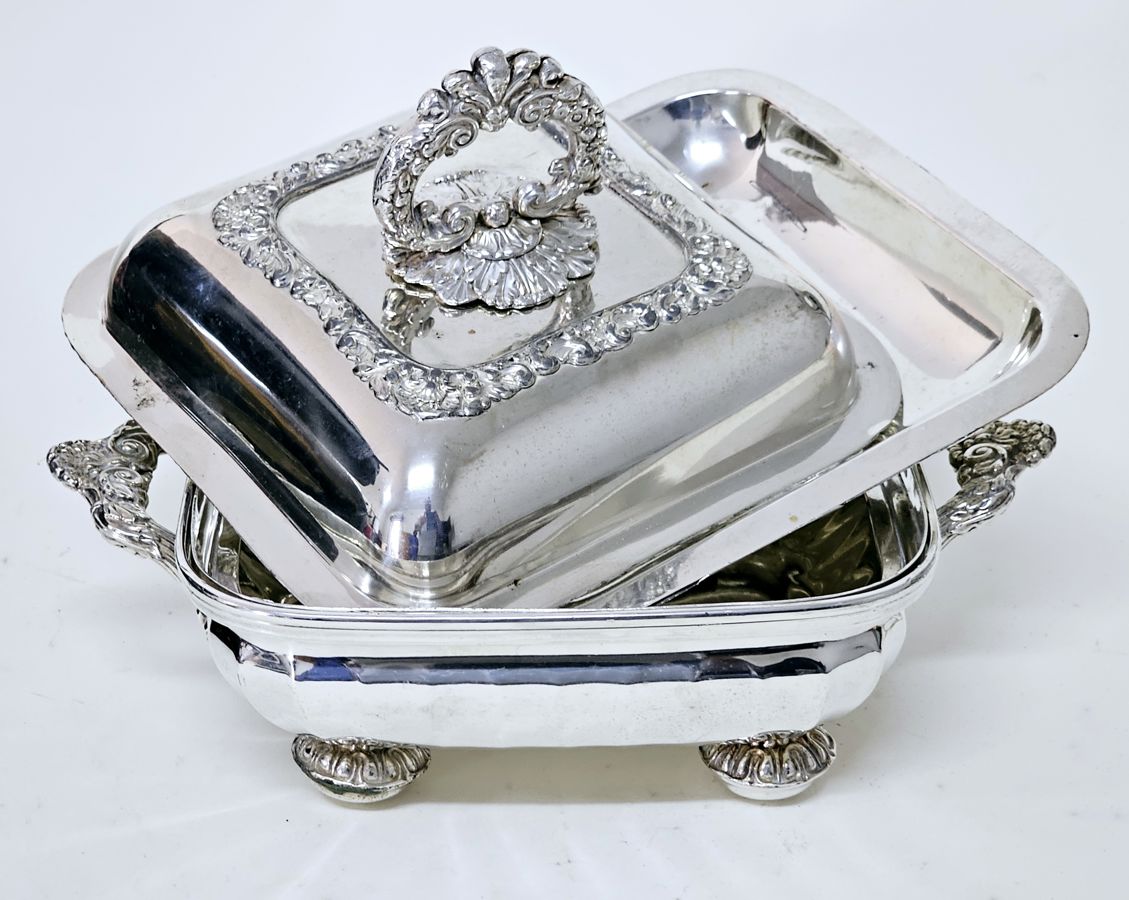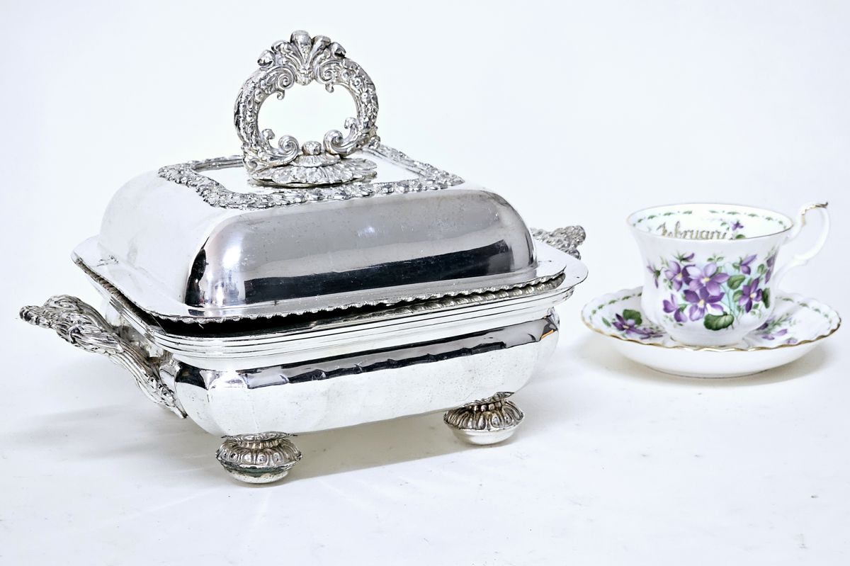 Antique Silver-Plated Entrée Hot Serving Dish with insert