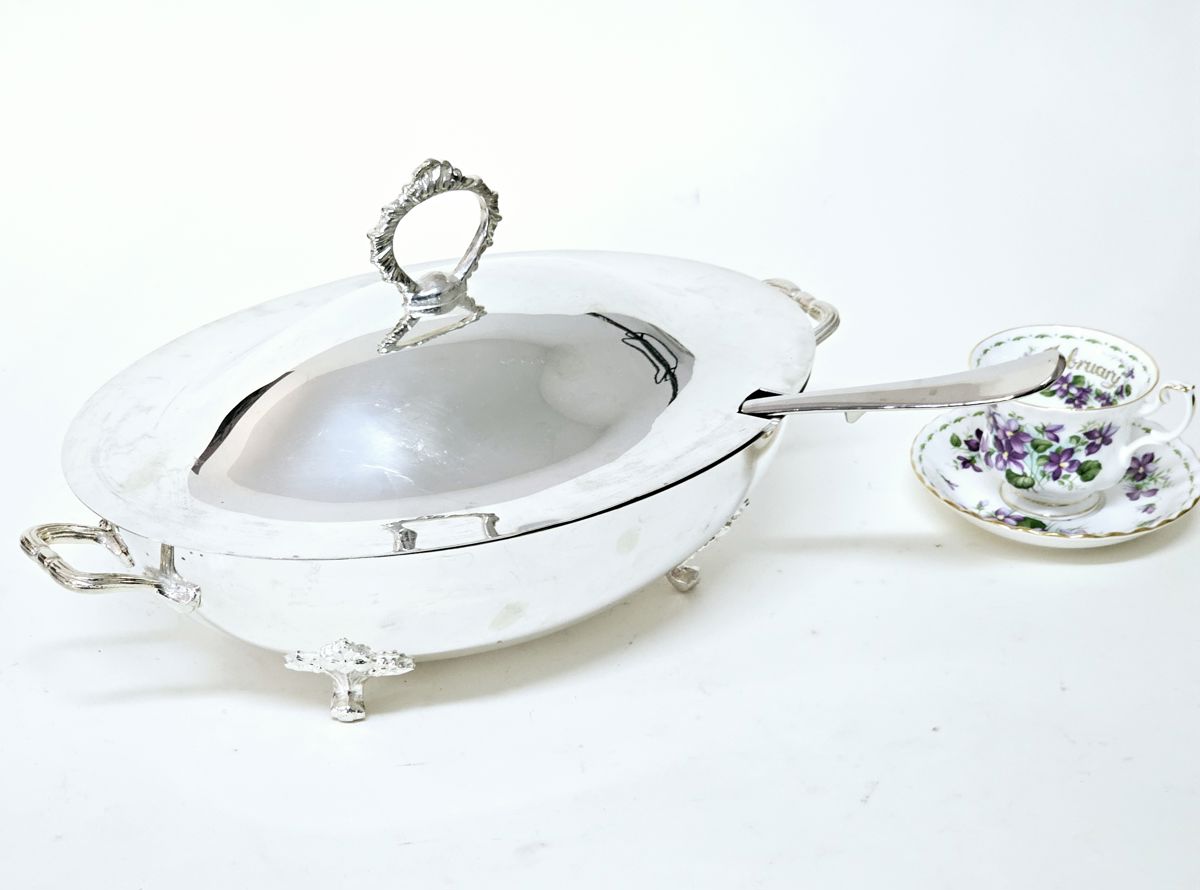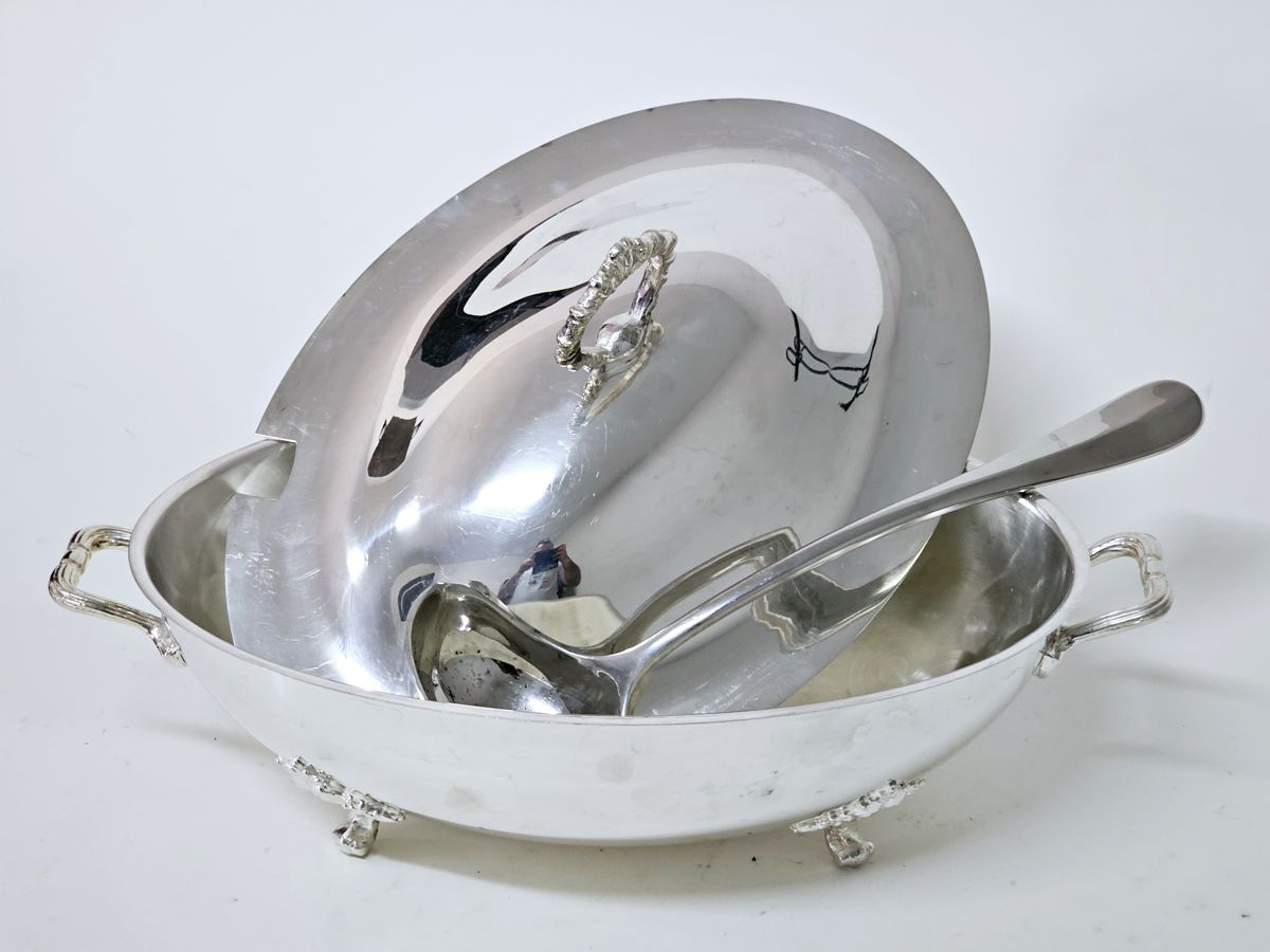 Vintage EM-ESS Silver Plated Oval Tureen with Ladle