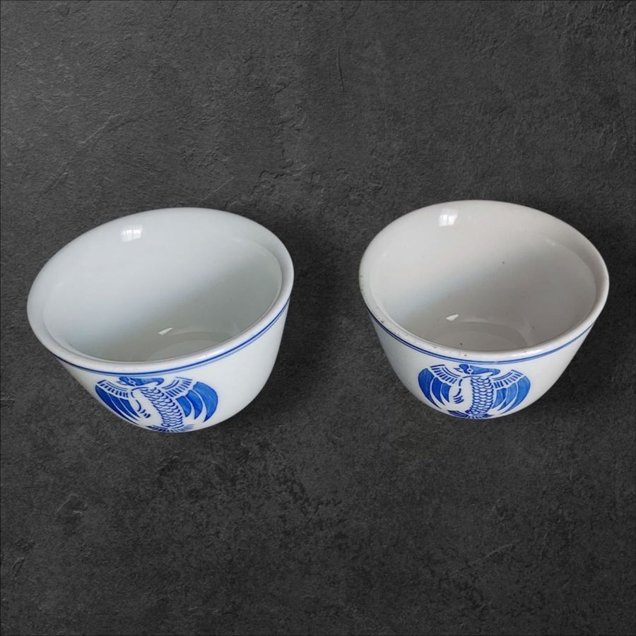 Pair of porcelain bowls featuring a traditional blue phoenix motif.