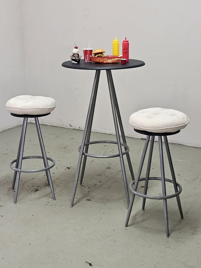 Metal Bar Table with Two Stools