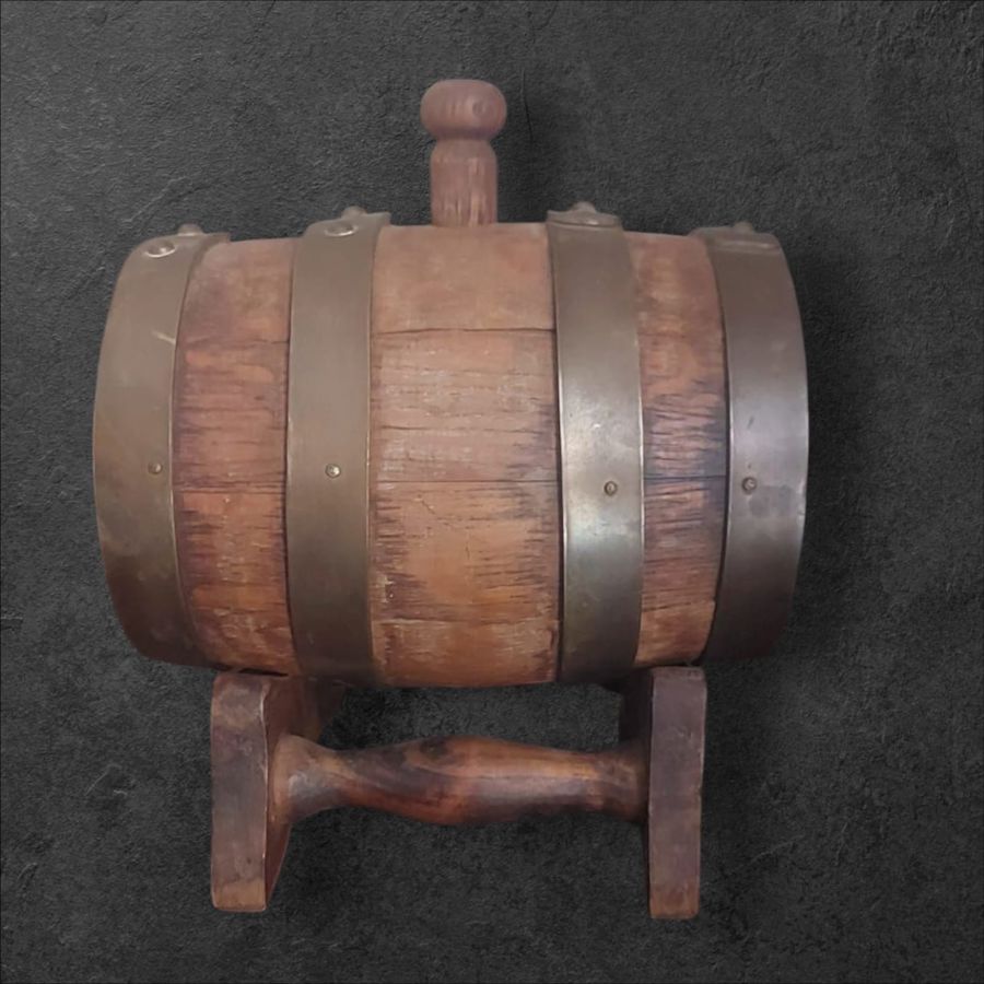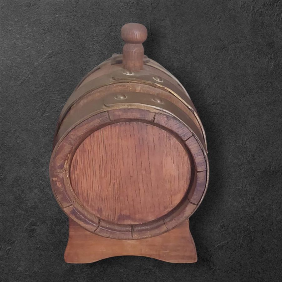 Design: Classic barrel shape, miniature size with decorative stand and stopper
