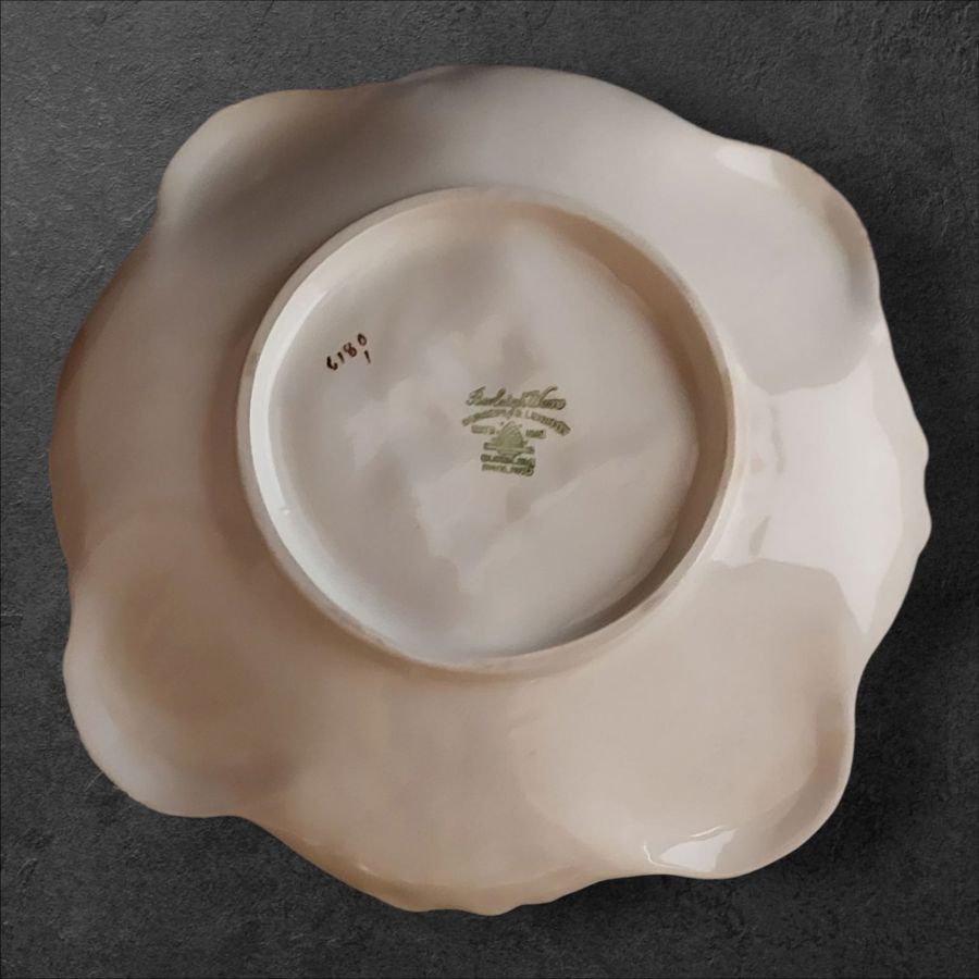 Majolica Pottery Plate featuring a pinecone and oak leaf design.