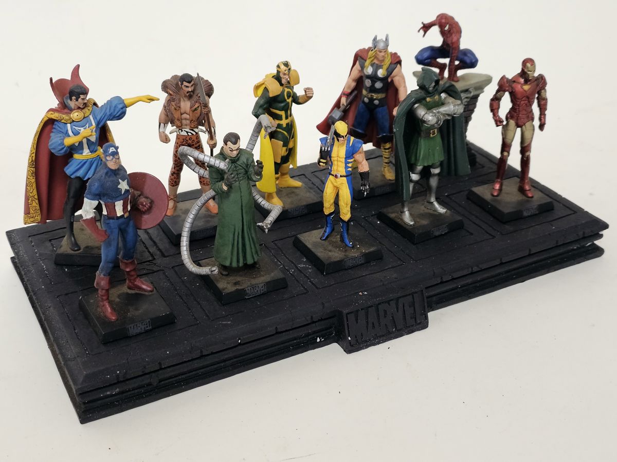 A private collection of Eaglemoss Marvel Figurines on plinth (2005-2013).