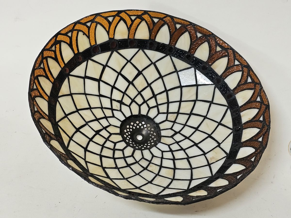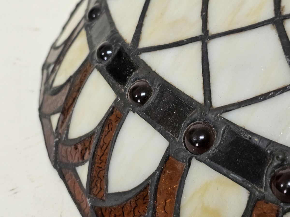 Large Vintage Leaded Art Glass Light Shade