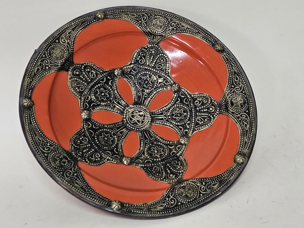 Stunning Moroccan Handcrafted decorative Ceramic Plate with metal work