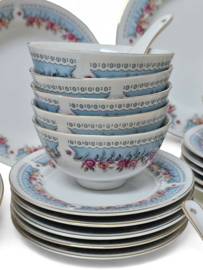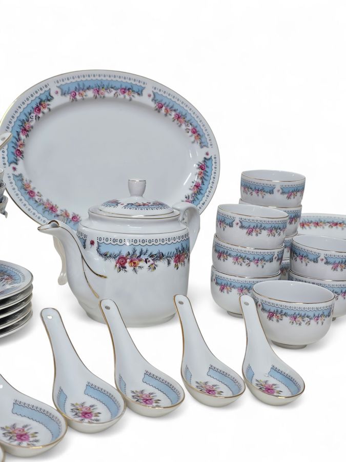 76pc Vintage Porcelain Tatung Taiwan Chinese Dinner Set.