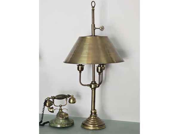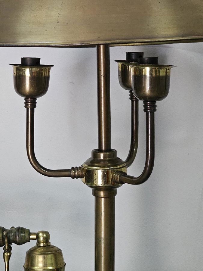Antique 3 Arm Brass Adjustable Table Lamps with Candlestick Holders