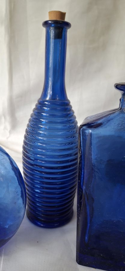 Set of Three Blue Glass Bottles