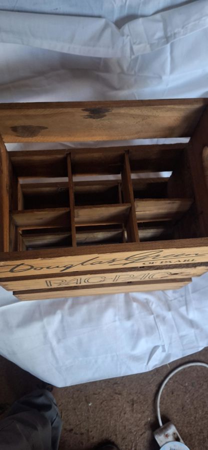 Vintage Douglas Green wooden crate, designed for bottle storage.