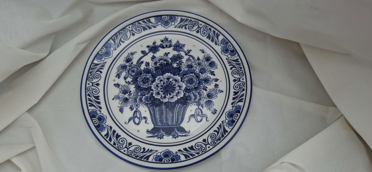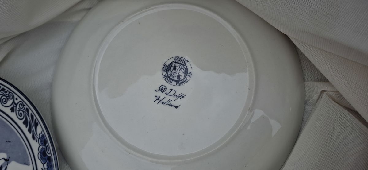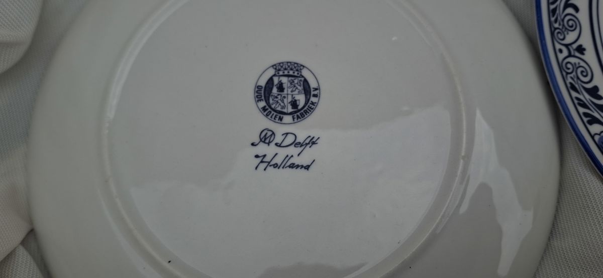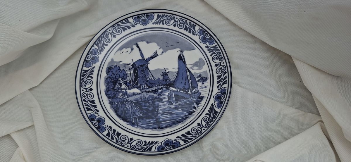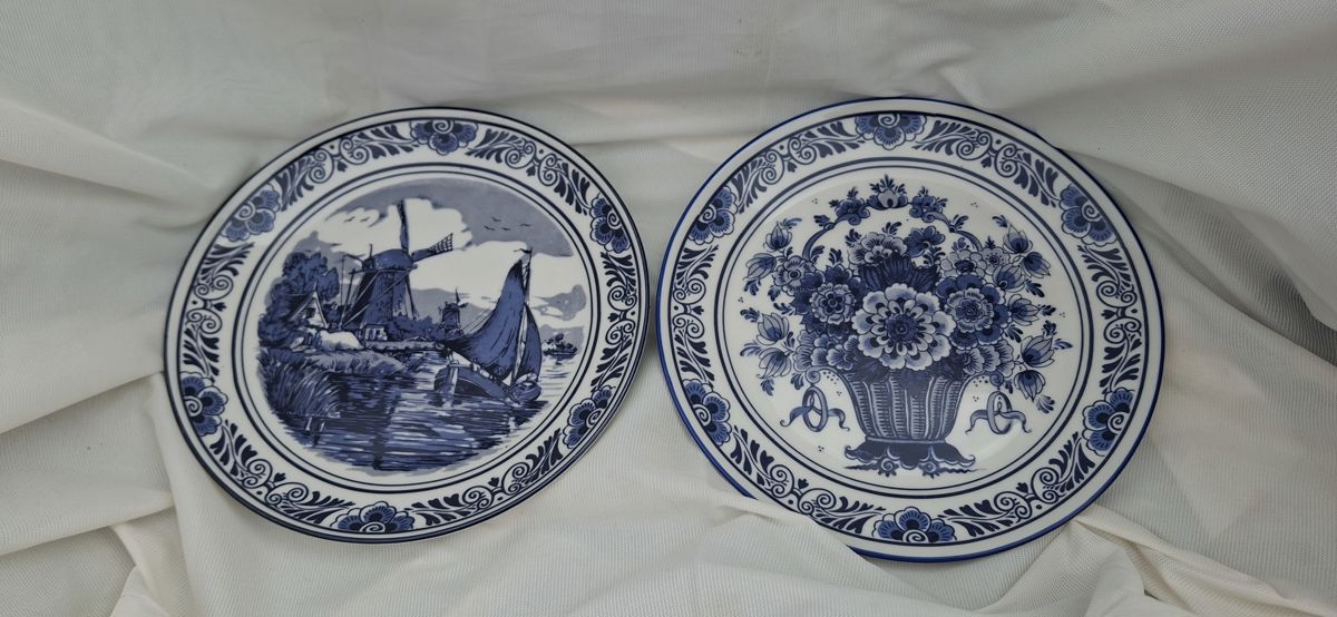 Delft Blue Ceramic Plates featuring floral and windmill designs.