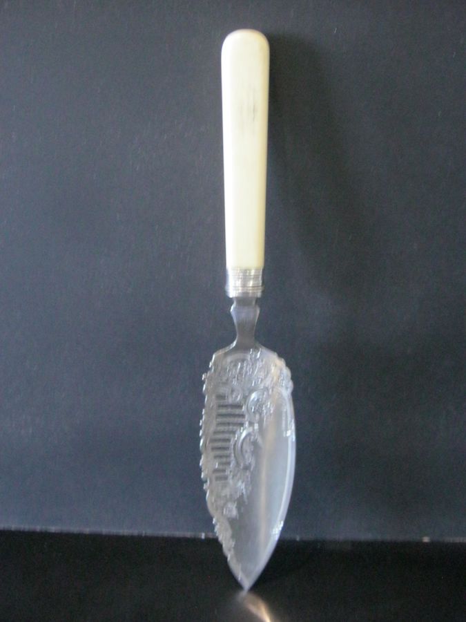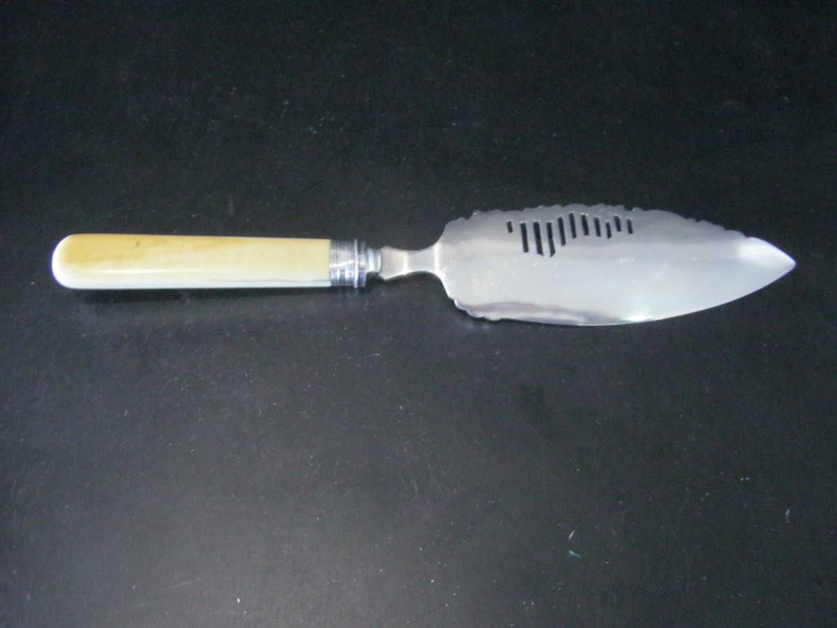 BONE HANDLED SILVER PLATED FISH SLICE WITH STERLING COLLAR, 31cm Overall Length, Sheffield 1905