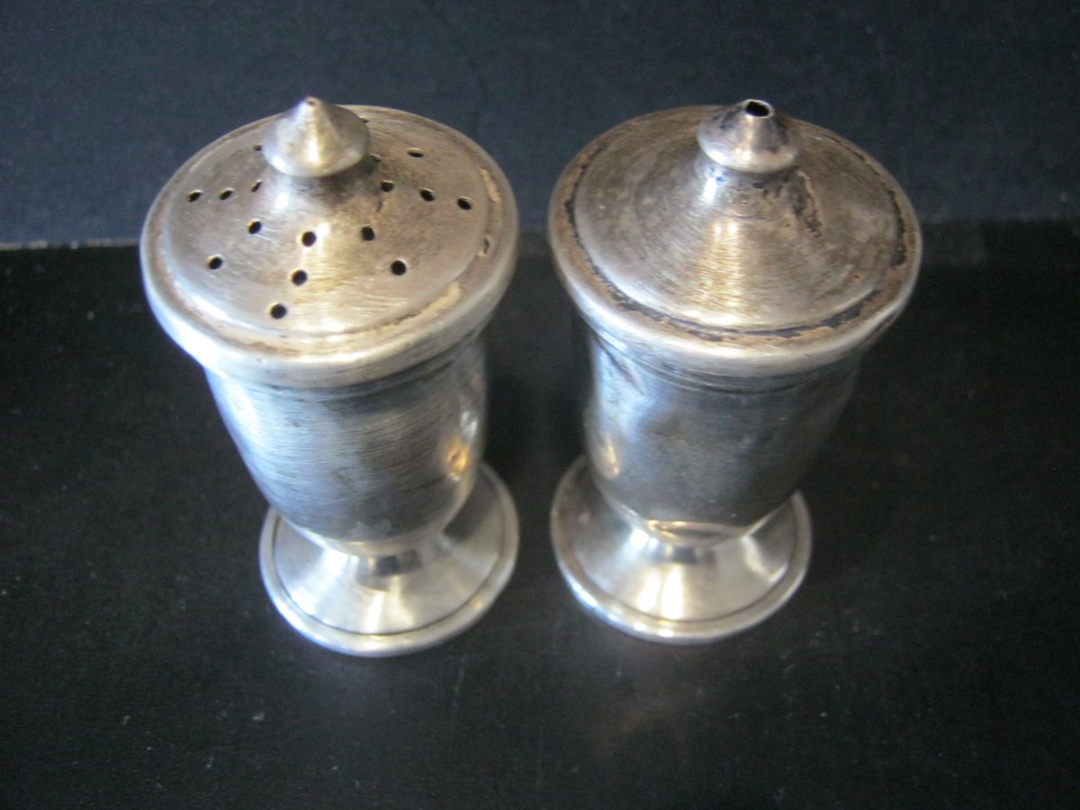 STERLING SILVER SALT AND PEPPER SHAKERS, 31.5g, Birmingham 1955, Distressed