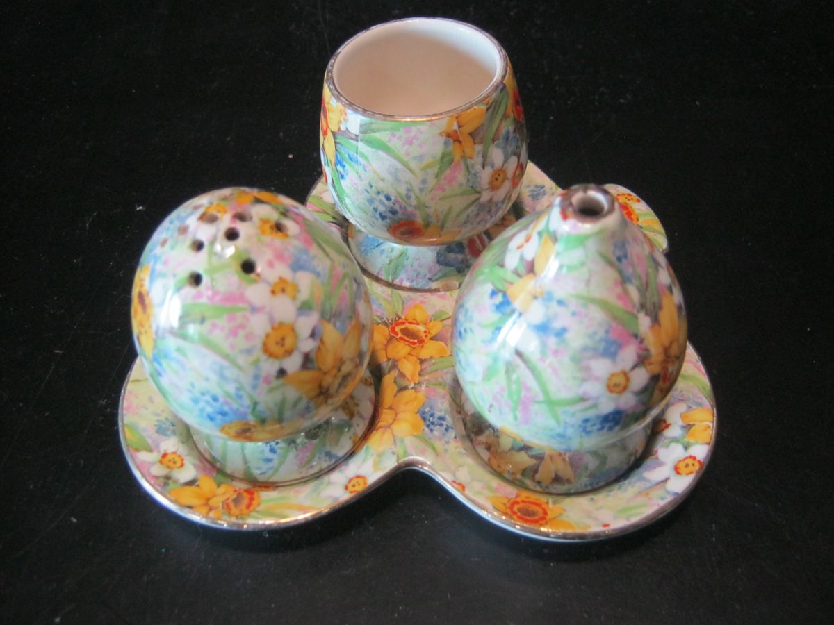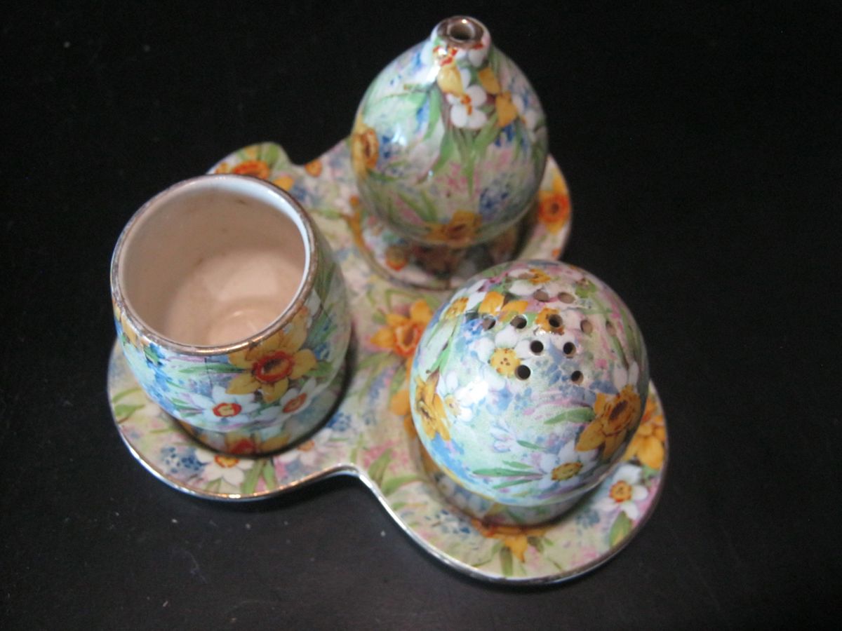 ROYAL WINTON 'RICHMOND' CRUET SET ON TRAY, Salt, Peper and Open Mustard