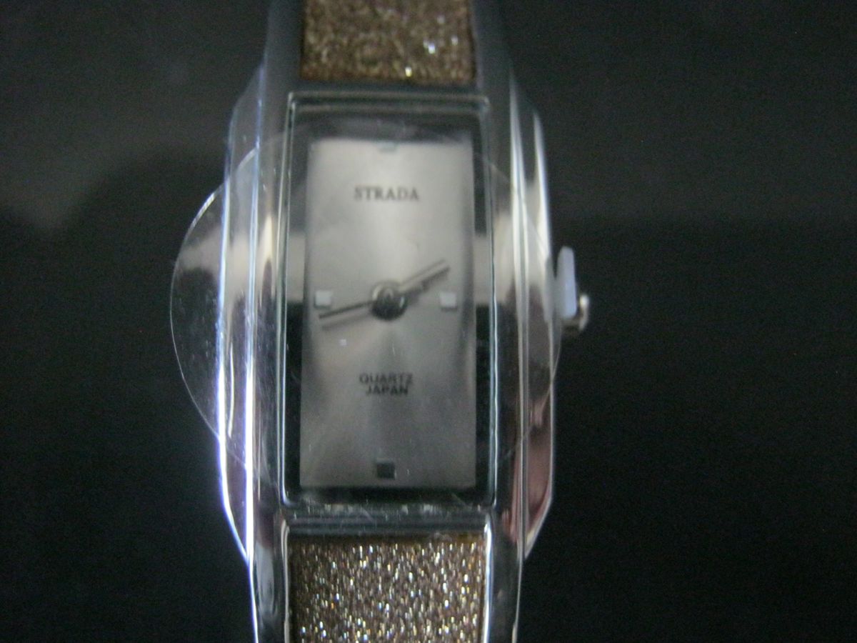 STRADA WATCH AND BRACELET SET, White Metal with Gold Crystal Inset, Hinged Bracelet, Unused