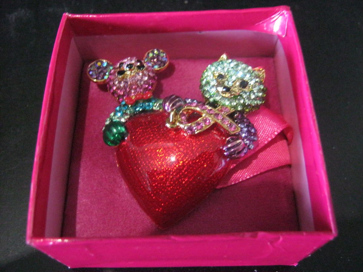 BUTLER & WILSON CRYSTAL CAT AND MOUSE BROOCH, 52mm Long