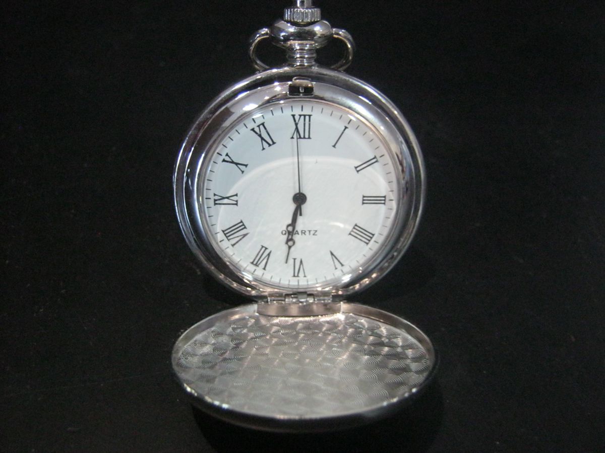 SILVER METAL POCKET WATCH, Quartz, Untested