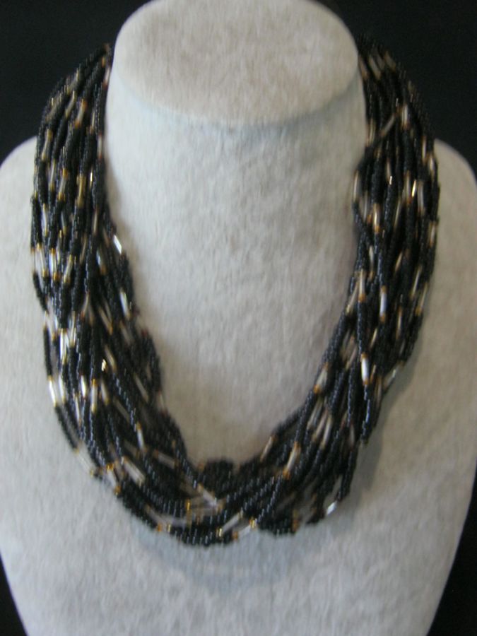 MULTI-STRING GLASS BEAD NECKLACE WITH SILVER METAL CLOSER, 50cm Long