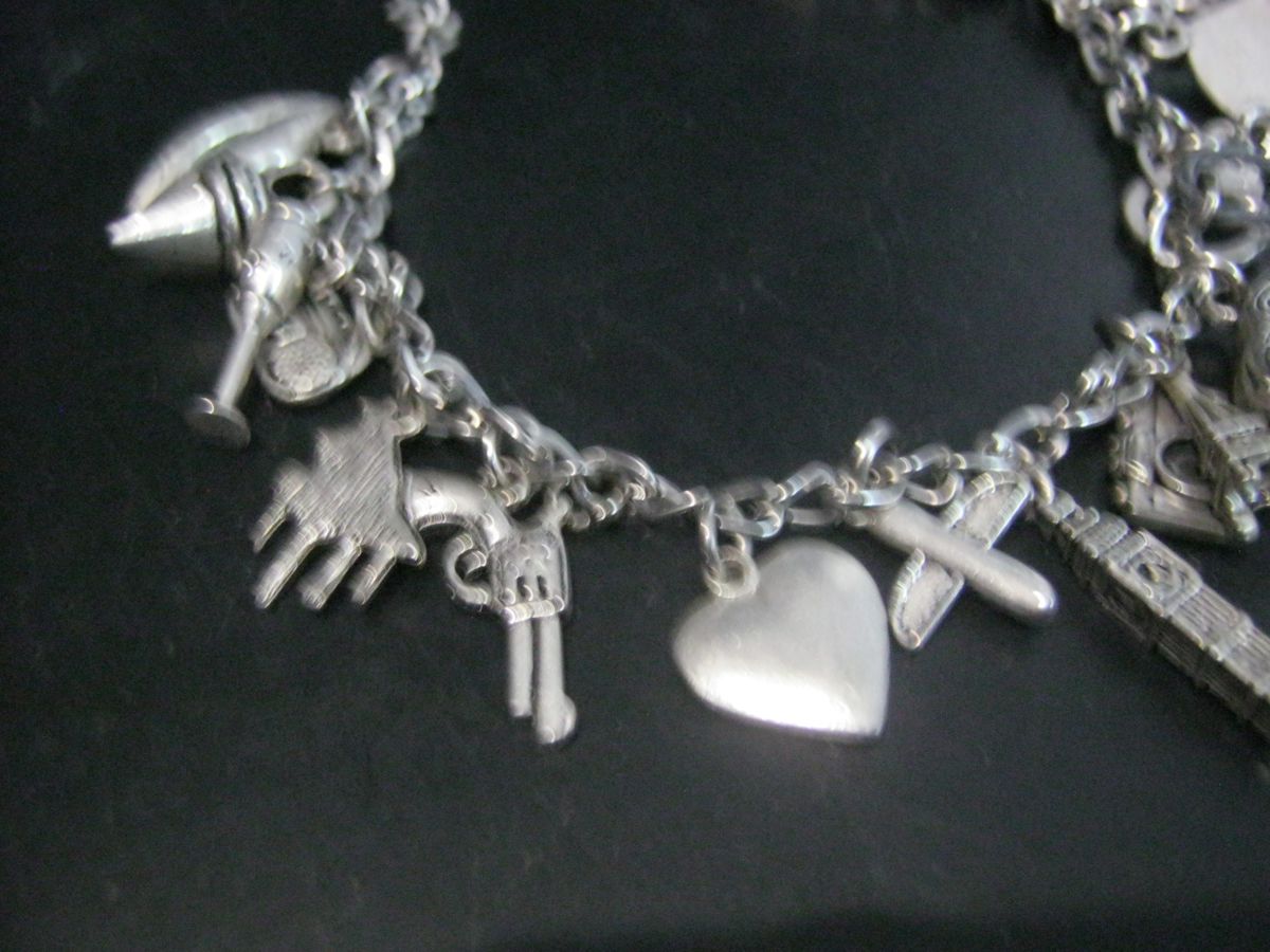 STERLING SILVER CHARM BRACELET, 19 Charms, Not all Charms Stamped, 37.5g,