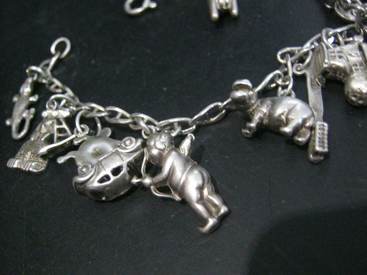 STERLING SILVER CHARM BRACELET, 19 Charms, Not all Charms Stamped, 30.3g,