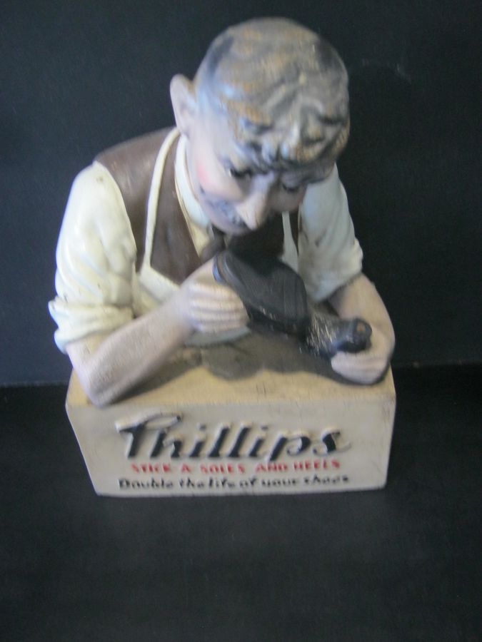 PHILLIPS STICK-A-SOLE COBLER'S SHOP ADVERTISING FIGURE, Mid Century, 30cm High, 20cm Wide, Crackle to Surface