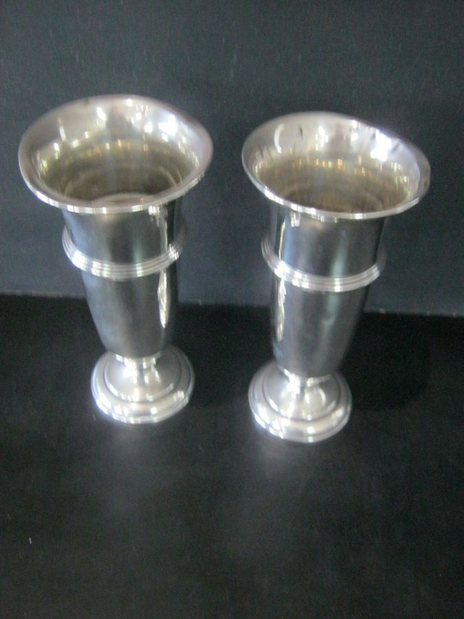 PAIR OF STERLING SILVER VASES, Birmiongham 1947, 19cm Tall, Bases Weighted, Dents to Rims, Total Weight 471g