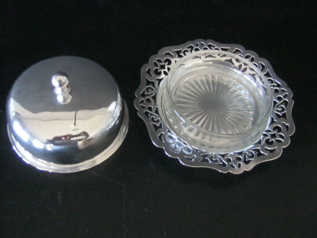 SILVER PLATED BUTTER DISH WITH GLASS INNER