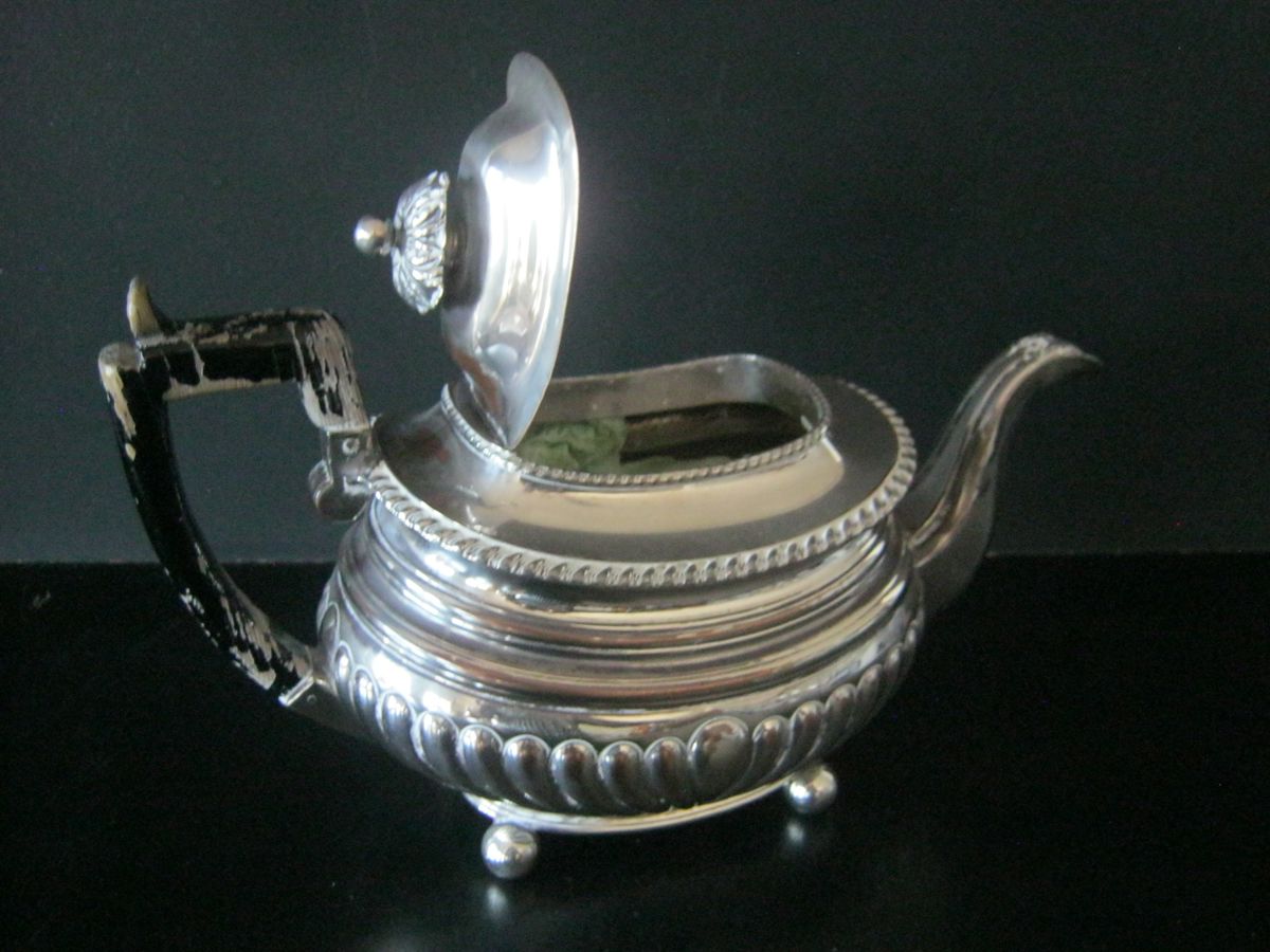 LARGE DEMI REEDED SILVER PLATED TEAPOT, 18cm Overall Height, Handle Distressed