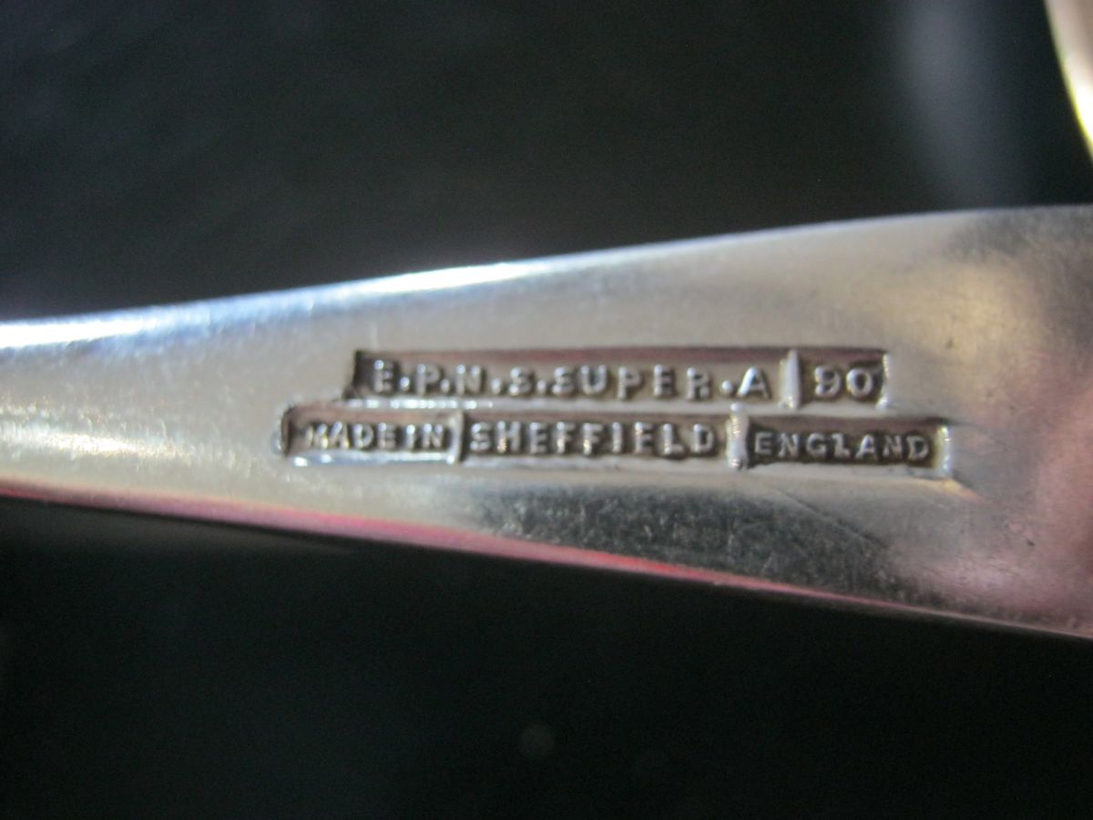 6 PLACE OLD ENGLISH SILVER PLATED CUTLERY SET, Dinner and Entre Knives, Dinner and Entre Forks, Soup Spoons, Desert Spoons, Teaspoons, Substituted Knives,