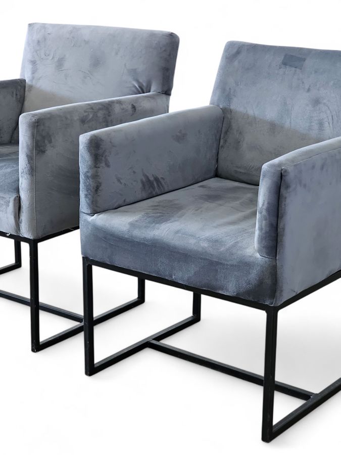 New Pair Vincent 1 DIV Arm Chair| LIGHT GREY Velvet and metal Frame 64cmx63cmx87cm