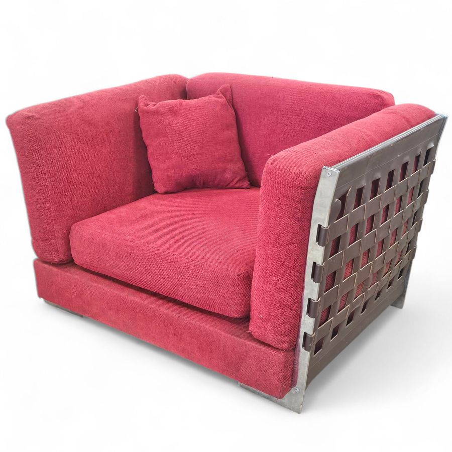 Pair Cestone Leather and Metal Arm Chairs . Used Condition . 125cmx100x76cm
