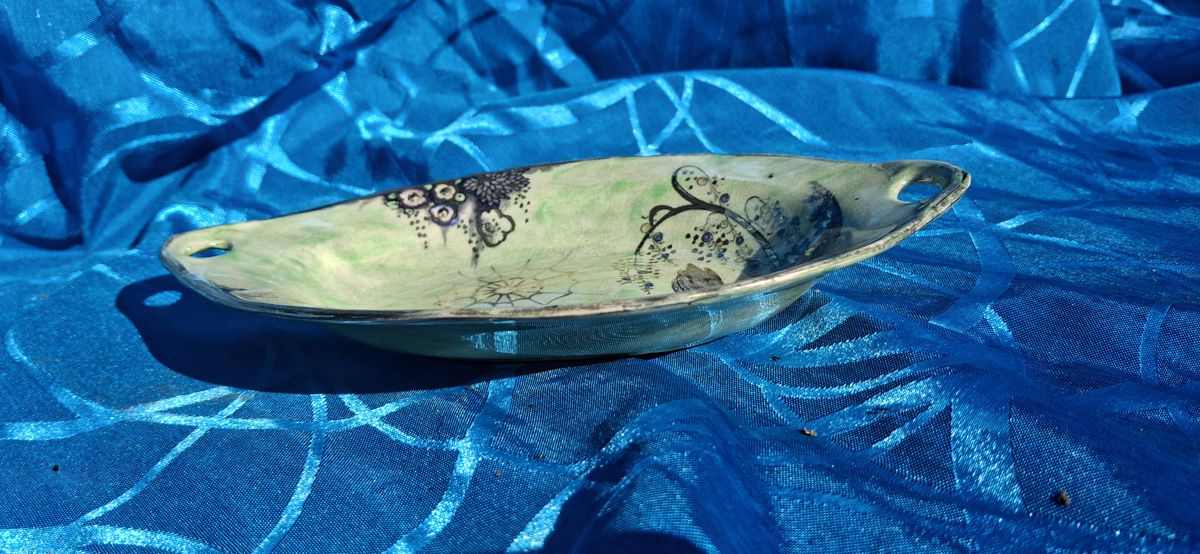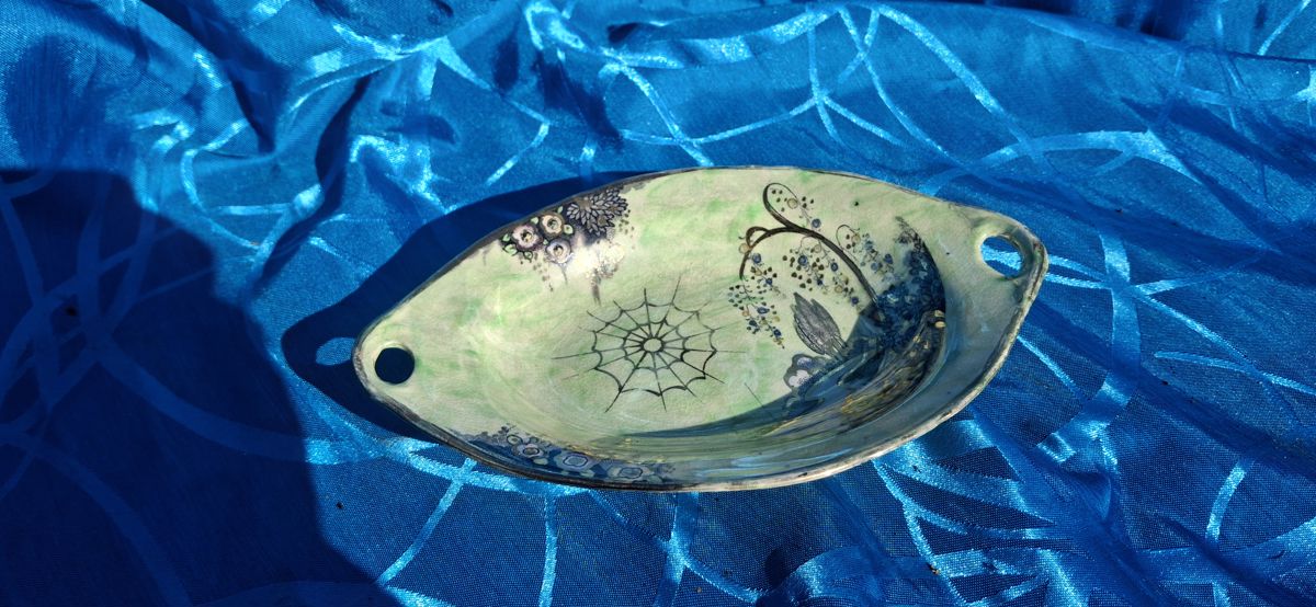 Royal Staffordshire Pottery oval dish with floral and web design.