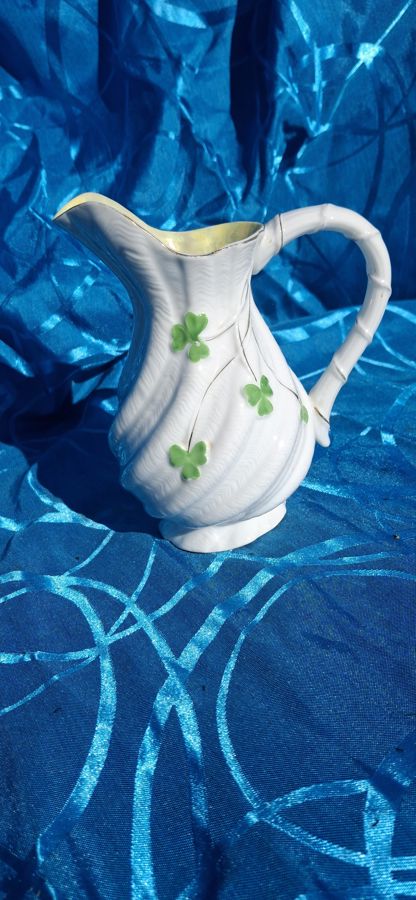 Vintage ceramic jug with a unique hand-painted clover design.