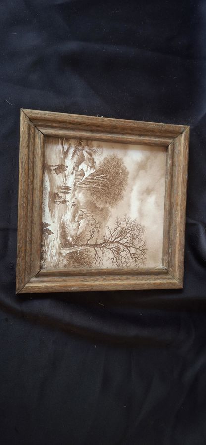 Pair of Royal Schwabap framed ceramic artworks featuring winter scenes.
