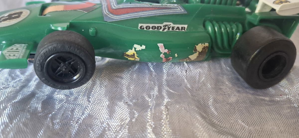 Additional Details: Features Goodyear and other racing decals, likely 1:32 scale. Suitable for collectors or slot car enthusiasts.