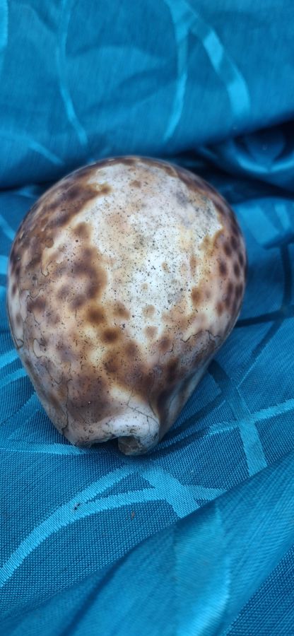 Species: Cypraea tigris, known for its distinctive spotted pattern and glossy finish