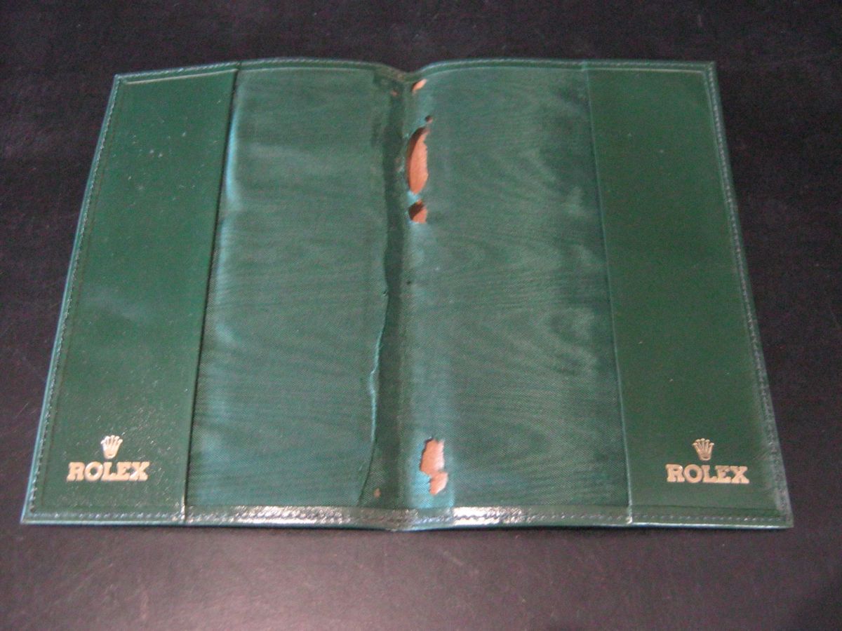 VINTAGE ROLEX GREEN LEATHER PASSPORT HOLDER, Some wear to fabric lining