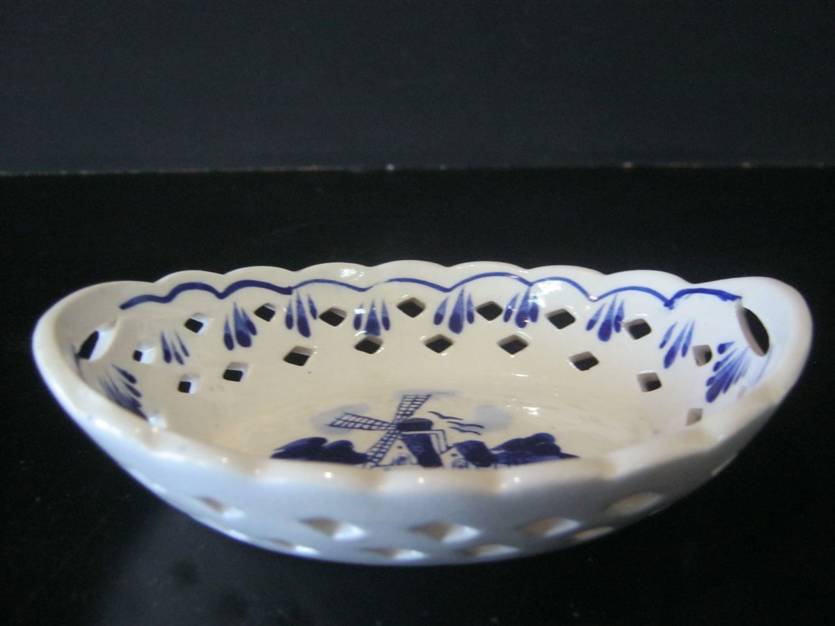 DELFTS OVAL PIN TRAY WITH PIERCED RIM, 13cm x 9.5cm