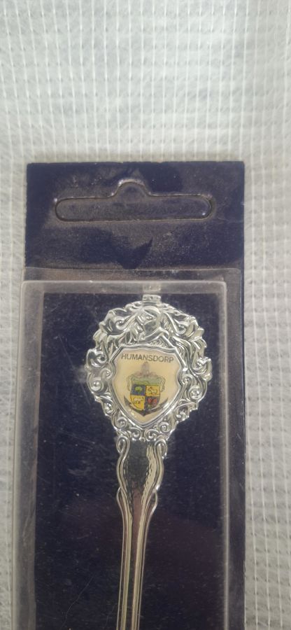 Decorative collector's spoon featuring a heraldic emblem on the handle.