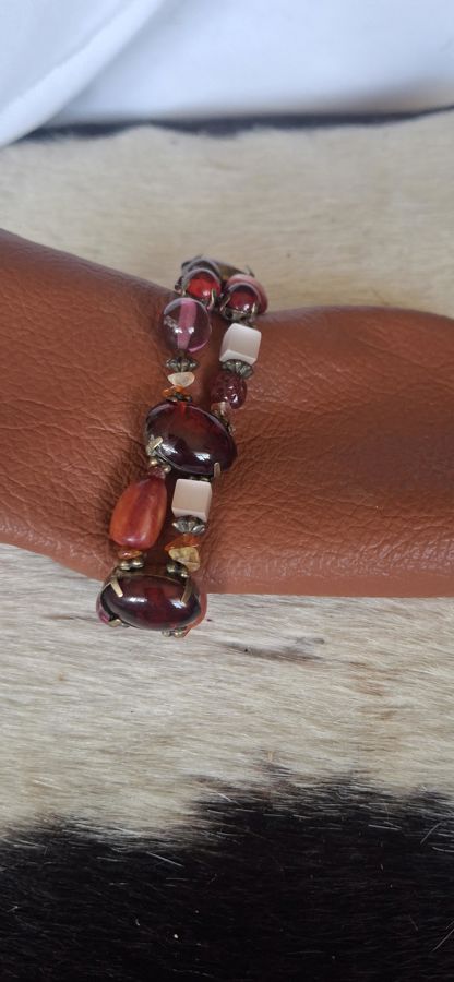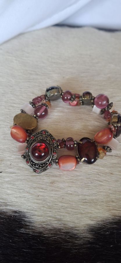 Material: A variety of semi-precious stones including agate and potentially garnet