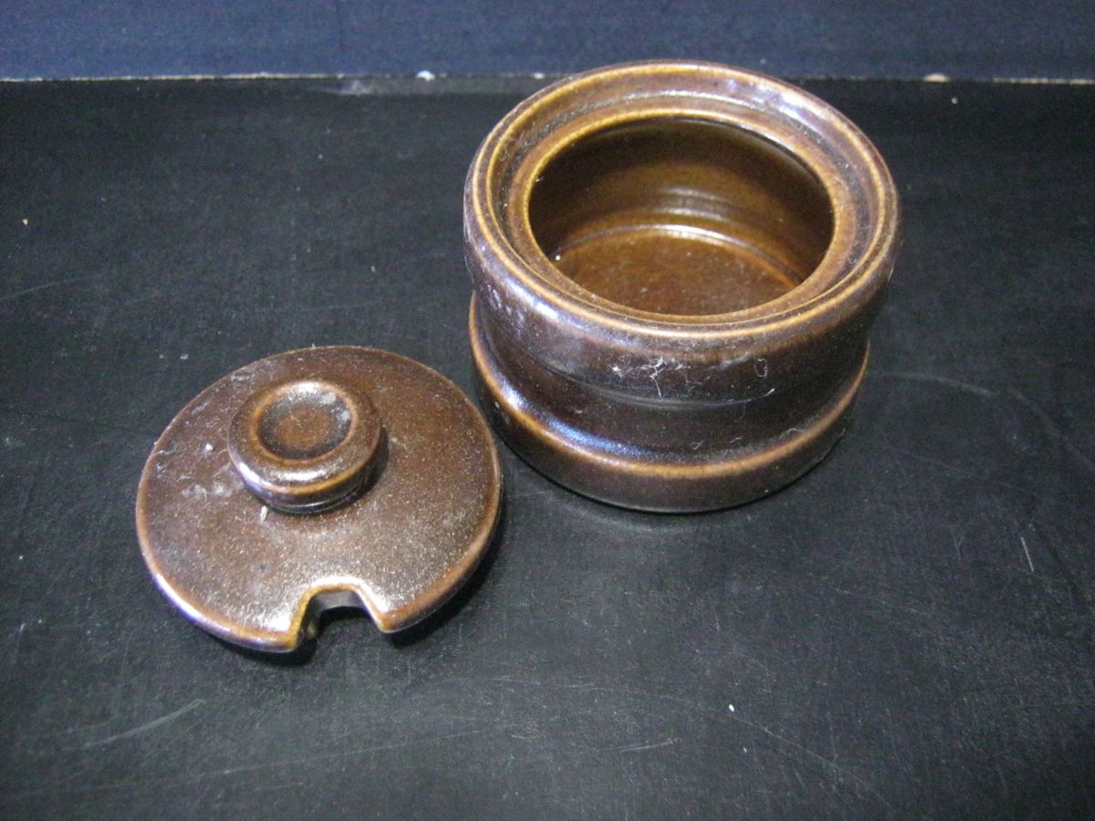 WEDGWOOD MID CENTURY BROWN POTTERY COVERED SUGAR, 5cm Overall Height