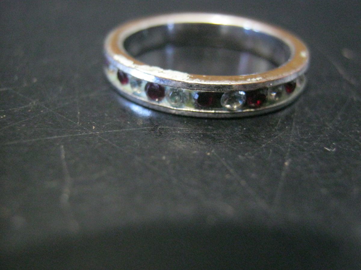 SILVER PLATED RING WITH RED AND WHITE STONES