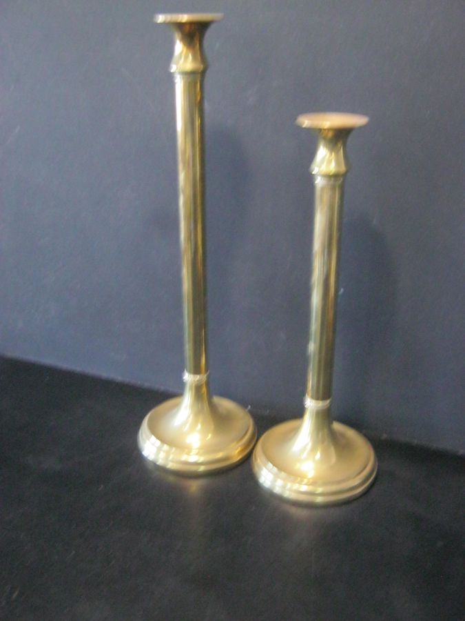GRADUATED BRASS CANDLE STICKS44cm and 36cm Tall