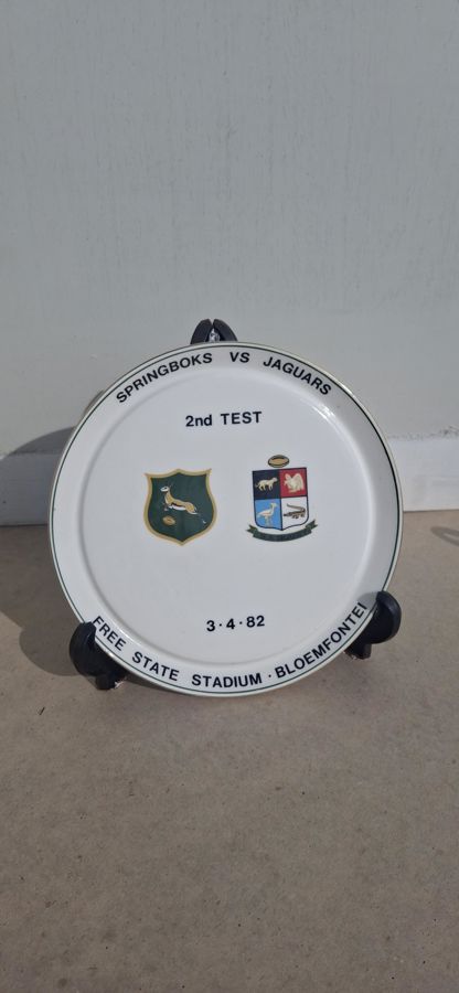 Springboks vs Jaguars 2nd Test commemorative plate from 3rd April 1982.