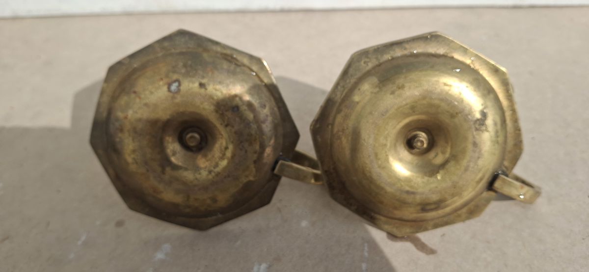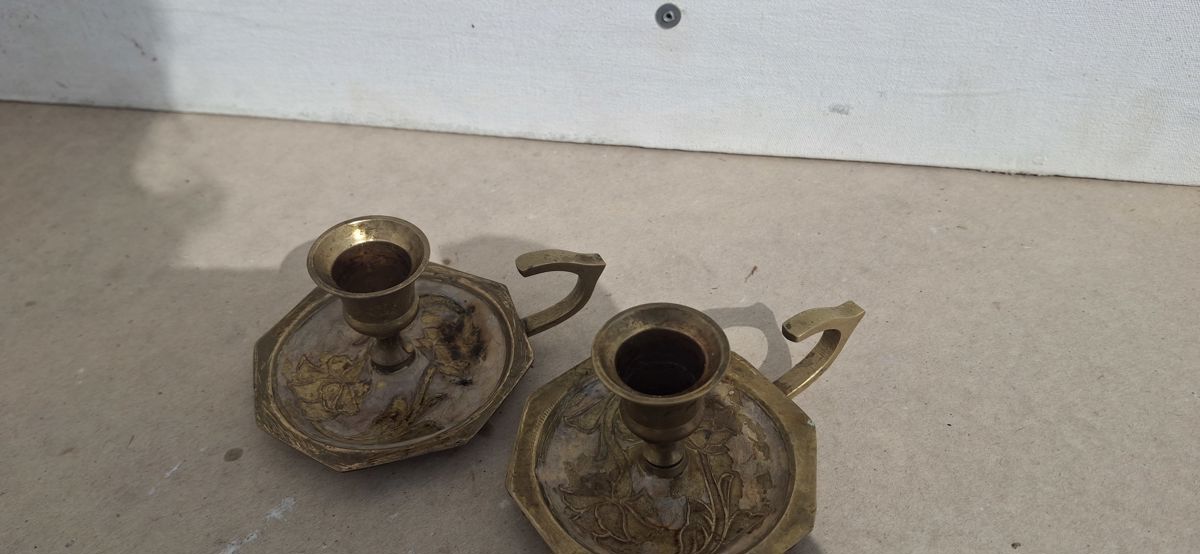 Pair of antique brass chamberstick holders.
