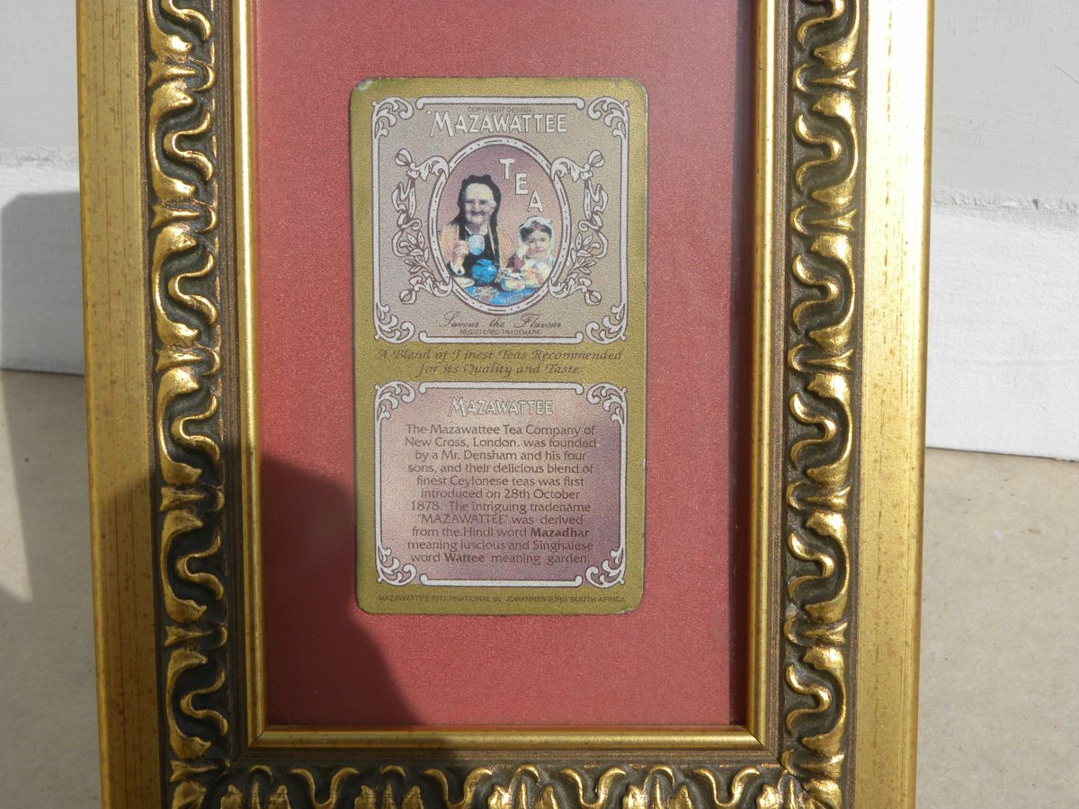 Framed Mazawattee Tea advertisement showcasing vintage branding.