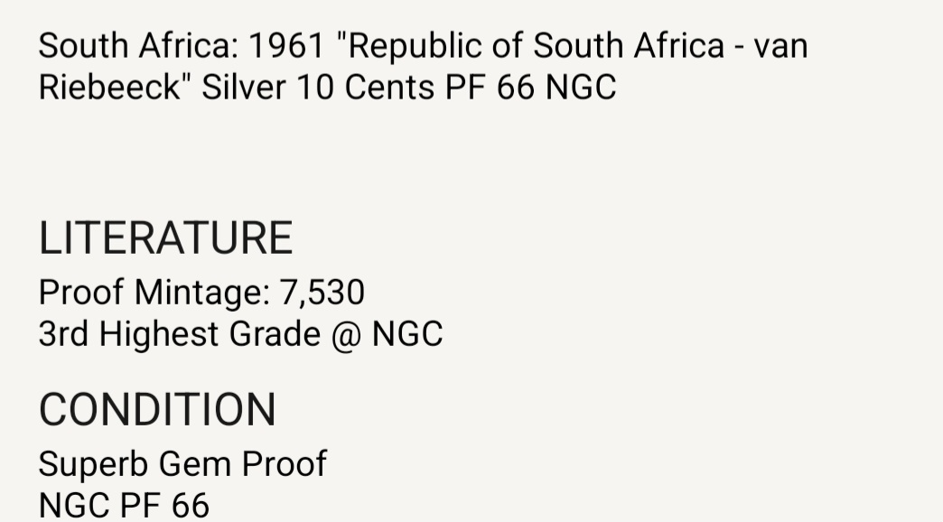 1961 South African Ten Cent Coin
