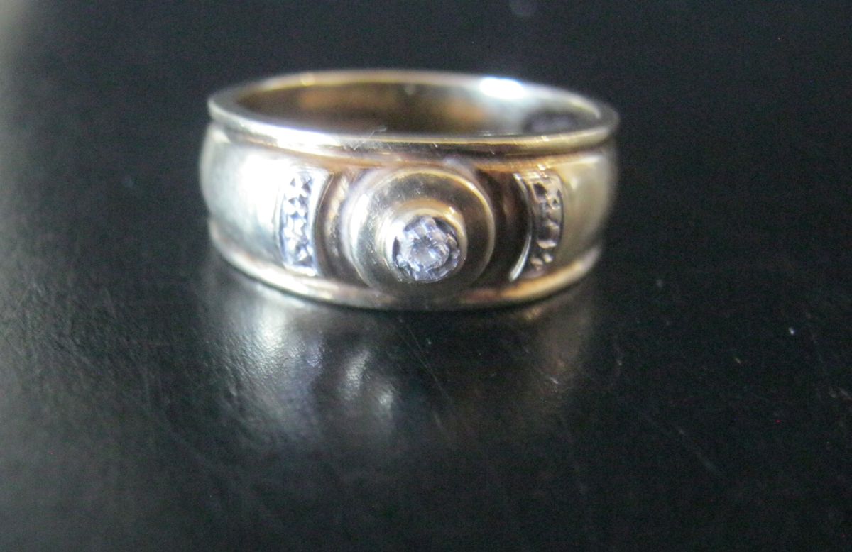 9CT GOLD RING WITH DIAMOND, Approx 2.5mm Diameter Diamond, Weight 4.3g