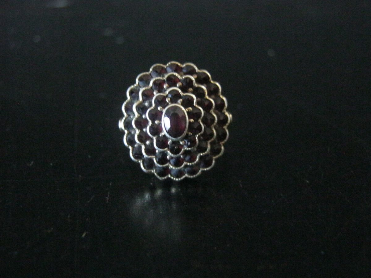 GOLD PLATED 900 SILVER RING WITH GARNET CLUSTER, 5.5g